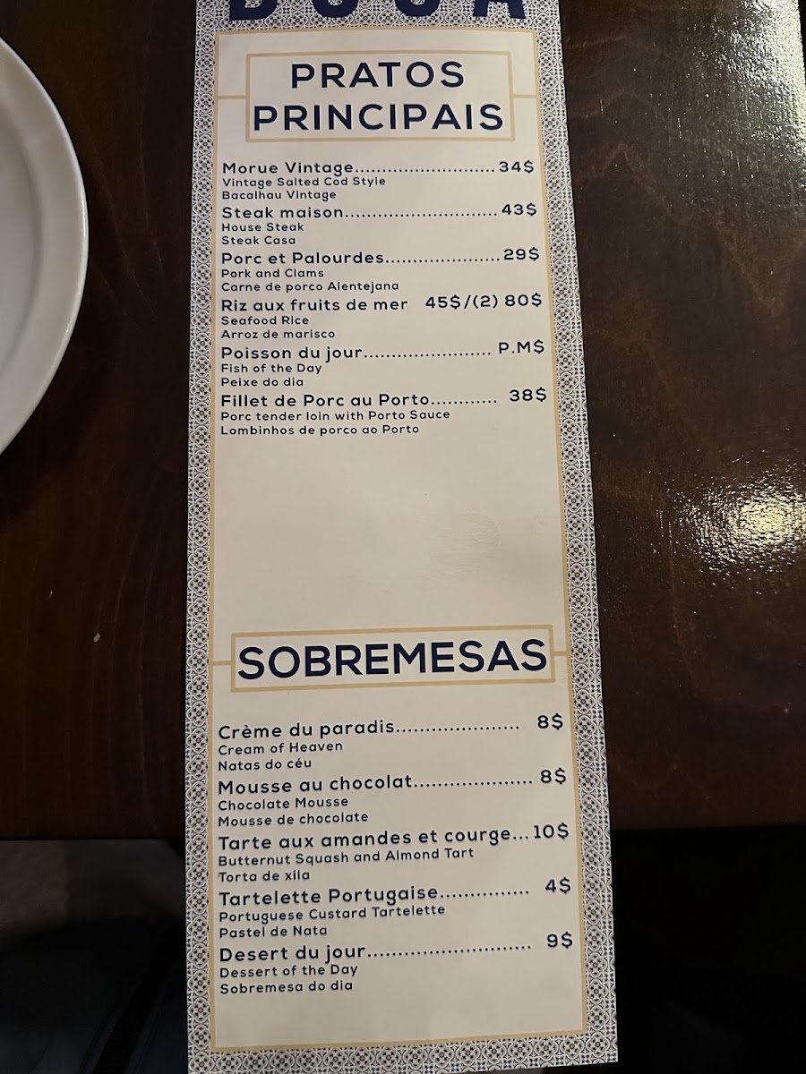Finally, the restaurant’s SOBREMESAS (desserts) bring a sweet ending to the meal. The Natas do céu, a creamy custard dessert, and the Mousse de chocolate, a rich chocolate mousse, are both indulgent choices. For a more traditional Portuguese treat, the Torta de xila is a must-try, as is the beloved Pastel de Nata, a classic custard tart. Don’t forget to ask about the Sobremesa do dia, as the dessert of the day could offer an exciting new experience.